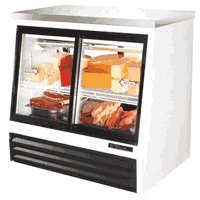 True - Single Duty Refrigerated Display Case - Self Service - Four (4) Doors - 48-5/8" Wide x 32-1/8" Deep x 42" Tall - TSID-48-4-LGravity coil refrigeration. Three product illuminating light sources for brilliant product display. Self-contained. Automatic defrost time clock. Strong adjustable vinyl-coated wire shelves. Holds ideal 40°F case temp. for fresher deli products. White exterior. Dimension: 32" Deep x 42" High Electrical: 120 Volts Warranty: One Year Parts and Service with 5 Year on the Compressor